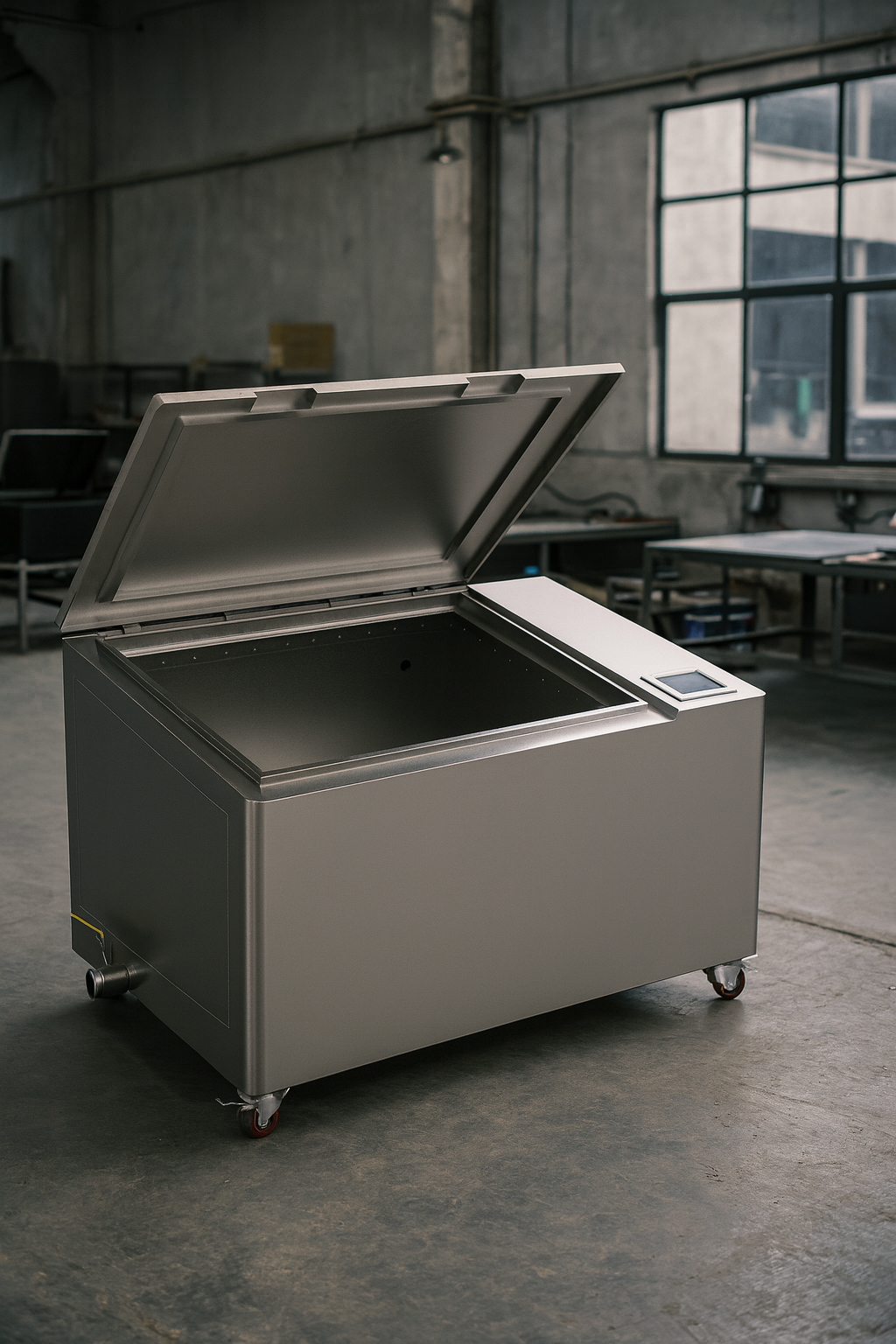 The next step is to fill the vessel with an alkaline solution, a mixture of water and alkaline chemicals to submerge the body.